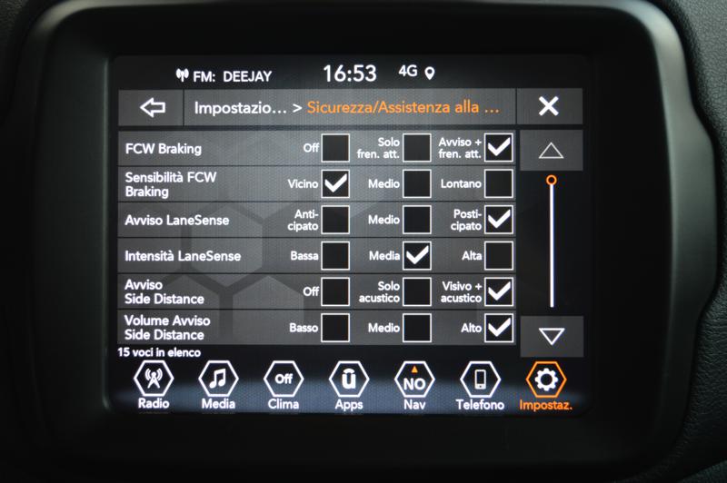 AIR BAG GUIDA E PASSEGGERO, AIR BAG LATERALI ANTERIORI, ALZAVETRI ELETTRICI ANT E POST, AUTORADIO, AVVISO ANGOLO CIECO, BLUETOOTH, CAMBIO AUTOMATICO, CARPLAY APPLE & ANDROID AUTO, CERCHI IN LEGA 19", CHIUSURE CENTRALIZZATE, CLIMATIZZATORE AUTOM.BIZONA, COMANDI RADIO AL VOLANTE, CONTROLLO DELLA FRENATA ABS, CONTROLLO ELETTRONICO DELLA CORSIA, CONTROLLO STABILITA' ESP/ESC, CRISTALLI POST.OSCURATI, CRUISE CONTROL CON LIMITAT. DI VELOCITA', DISATTIVAZIONE AIRBAG LATO PASSEGGERO, FARI A LED, FENDINEBBIA ANTERIORI, FRENATA D'EMERGENZA ASSISTITA, FRENO DI STAZIONAMENTO ELETTRICO, ISOFIX, KEYLESS ENTRY / KEYLESS GO , KIT RIPARAZIONE PNEUMATICI FIX&GO, LETTORE AUDIO MP3, MANCORRENTI AL TETTO, MOOD SELECTOR, PARK SENS ANTERIORI E POSTERIORI, POGGIABRACCIO ANTERIORE, PORTA AUX, PORTA USB, RADIO DAB, REGOLAZIONE LOMBARE ELETTRICA, SEDILE GUIDA REG.IN ALTEZZA, SENSORE PRESS. PNEUMATICI, SENSORI LUCI, SENSORI PIOGGIA, SERVOSTERZO, SISTEMA CHIAMATA D'EMERGENZA, SISTEMA DI NAVIG. CARTOGRAFICO, SISTEMA START & STOP, SPECCHI EST.REG.ELETTRICAMENTE, SPECCHI EST.RIPIEGABILI ELETT., SPECCHIO RETROV.INT.ELETTROCROMICO, TELECAMERA PER RETROMARCIA, TRIP COMPUTER DI BORDO, UCONNECT 8,4" NAV DAB CARPLAY & ANDROID, VERNICE METALLIZZATA, VOLANTE MULTIFUNZIONE